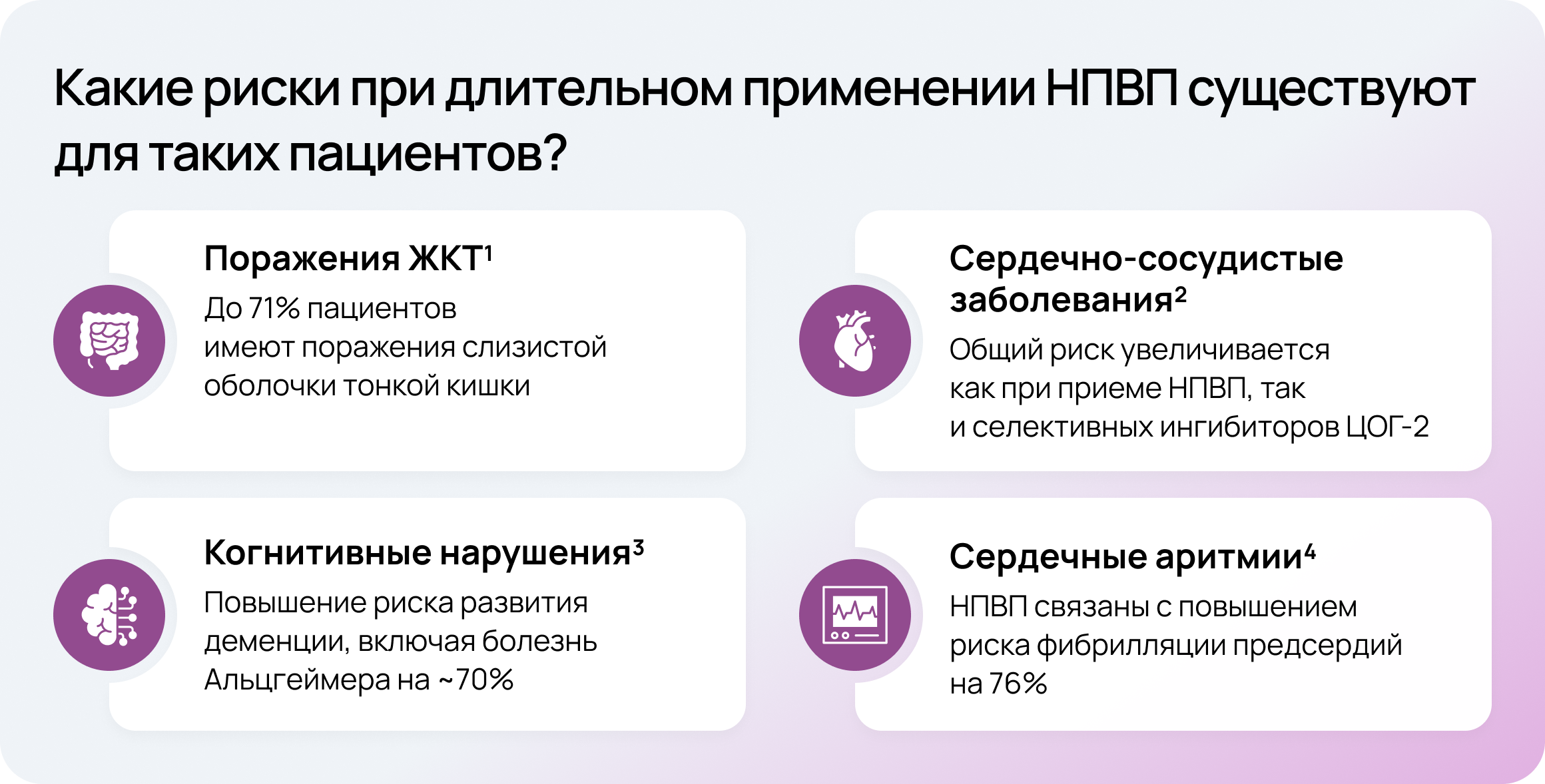 НПВП — нестероидные противовоспалительные препараты, ЖКТ — желудочно-кишечный тракт, ЦОГ-2 — циклооксигеназа-2, АХ — ацетилхолин, ЦНС — центральная нервная система, ПНС — периферическая нервная система, ГАМК — гамма-аминомасляная кислота, BDNF — белок мозгового нейротрофического фактора, ВАШ — визуально-аналоговая шкала.
