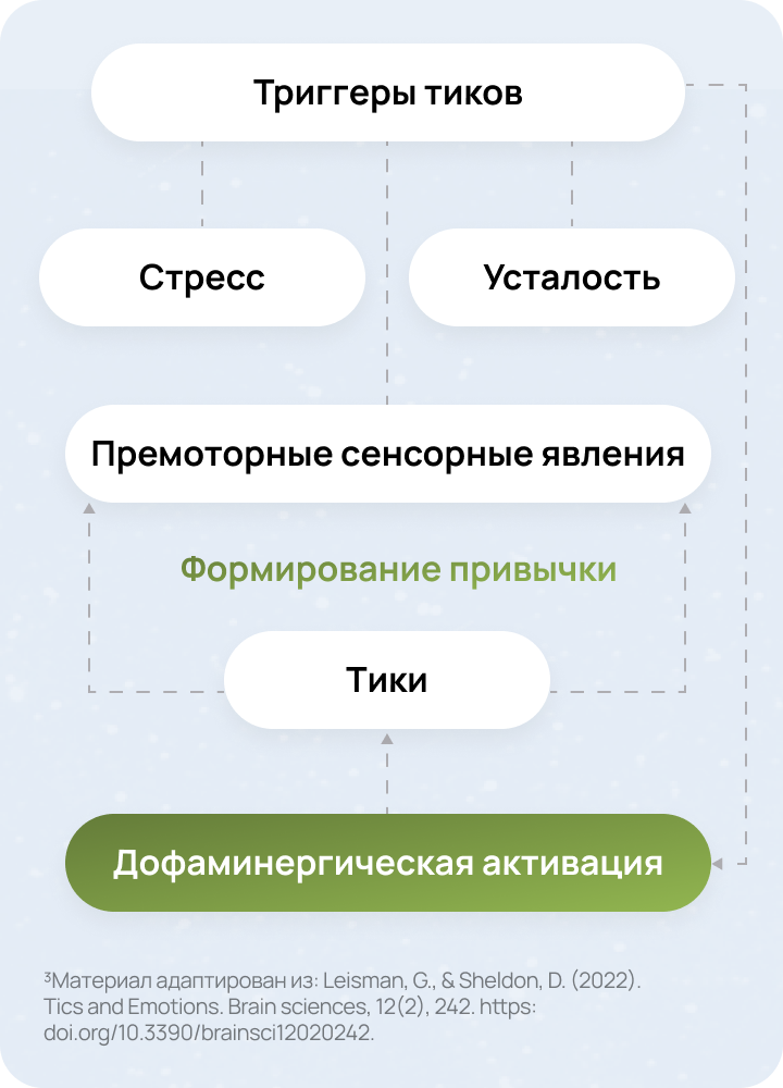 Тики формируются в результате высокой сенсорной стимуляции, вызванной стрессом, усталостью и другими триггерами