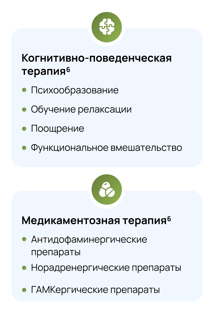 Современное лечение тиков предполагает комплексную стратегию, объединяющую немедикаментозные и медикаментозные подходы